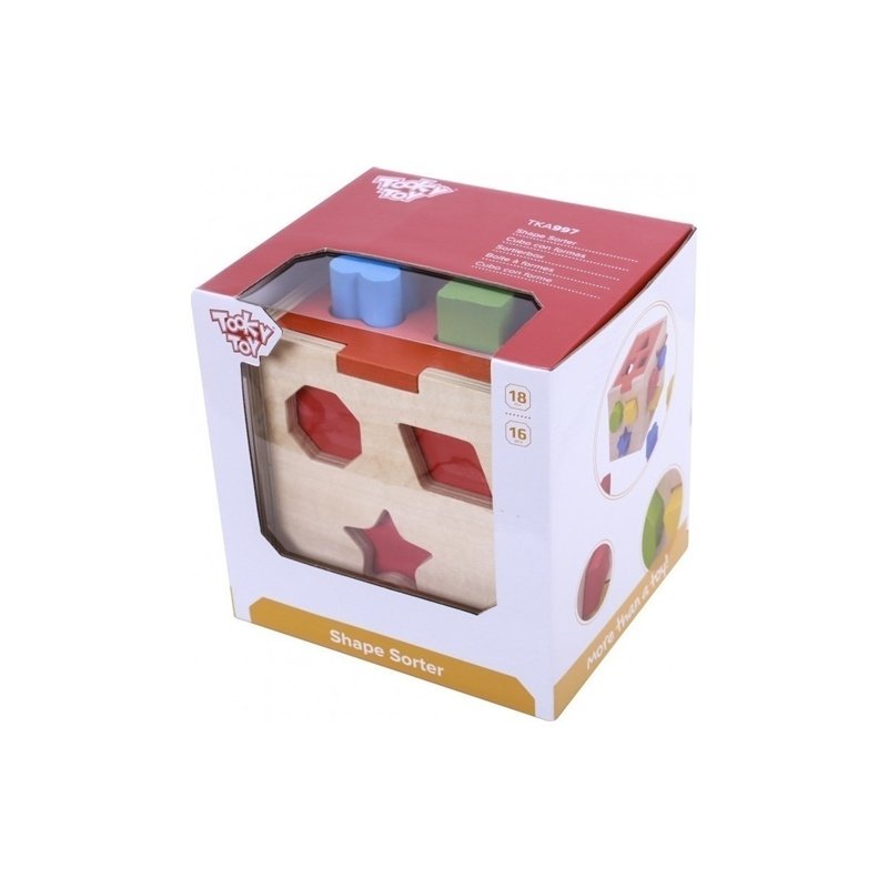 Με αυτόν τον ξύλινο κύβο με σφηνώματα το παιδί μαθαίνει τα σχήματα και τα μεγέθη και αποκτά καλύτερο έλεγχο των κινήσεών του και αναπτύσσει την παρατηρητικότητα του. Με έντονα χρώματα και διασκεδαστικά σχέδια, αποτελεί ένα εκπαιδευτικό κλασικό παιχνίδι κατάλληλο για παιδιά βρεφικής ηλικίας.