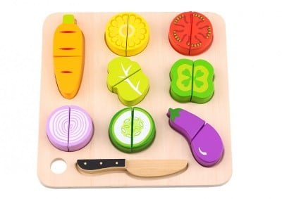 TOOKY TOYS. Ξύλινα σφηνώματα λαχανικών με δίσκο κοπής