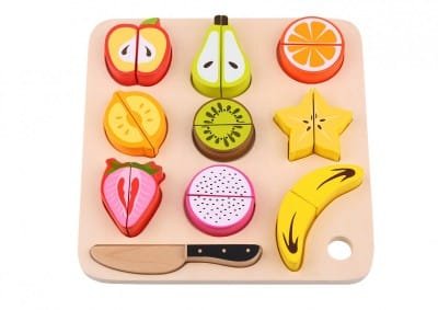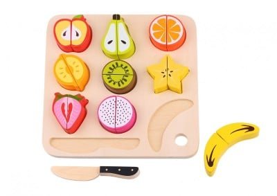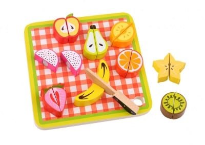 Ο μικρός μας σεφ θα δημιουργήσει υπέροχες και γευστικές φρουτοσαλάτες. Χρησιμοποιώντας ένα ξύλο κοπής και ένα ξύλινο μαχαιράκι, μπορεί εύκολα και γρήγορα να κόψει τα φρούτα μαθαίνοντας την έννοια του μισού και του ολόκληρου μέσα από τη μεγάλη ποικιλία σε φρούτα. Έτσι, η μάθηση γίνεται διασκέδαση!