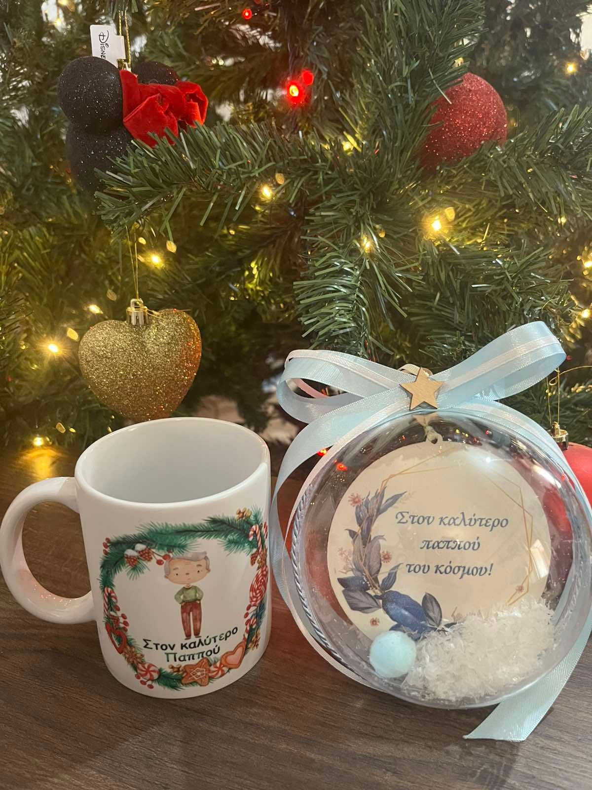 Σετ δώρου που περιλαμβάνει: 1 χριστουγεννιάτικη μπάλα 12 εκατοστά και 1 κούπα με αφιέρωση στον παππού