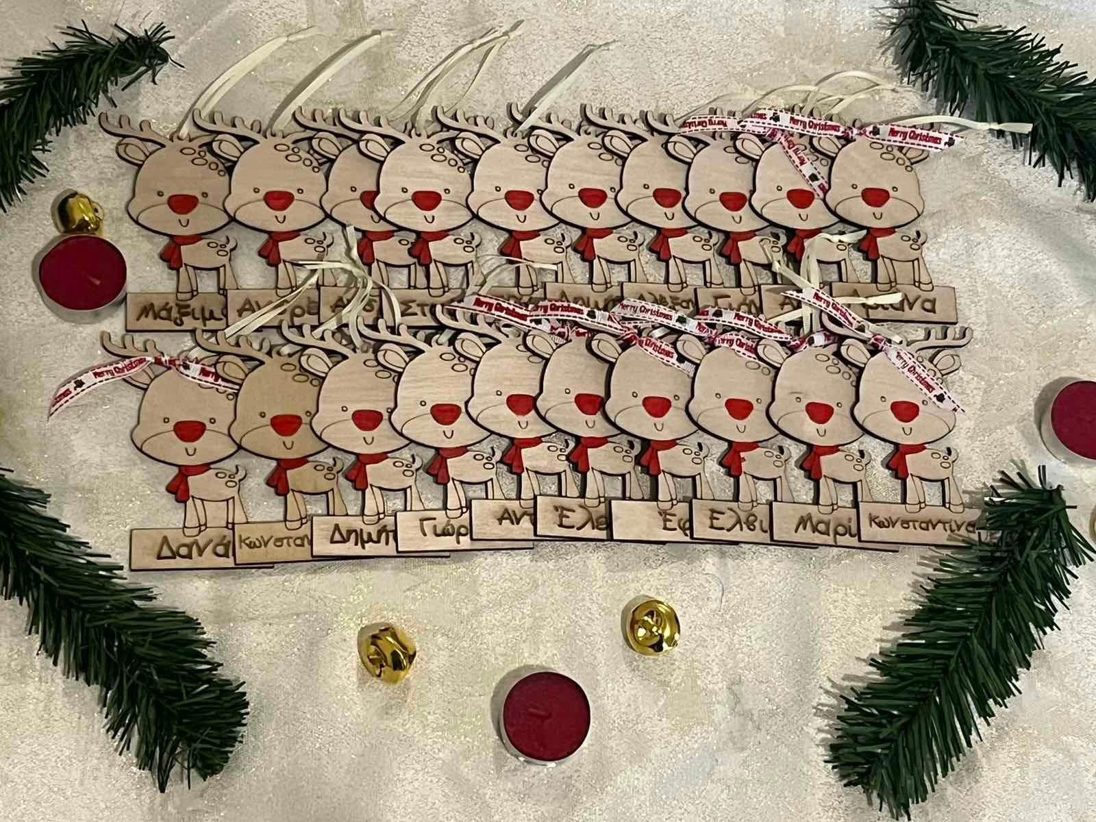 Ξύλινο στολίδι ταρανδάκι 12cm με επιλογή ονόματος για τα αγαπημένα σας πρόσωπα.